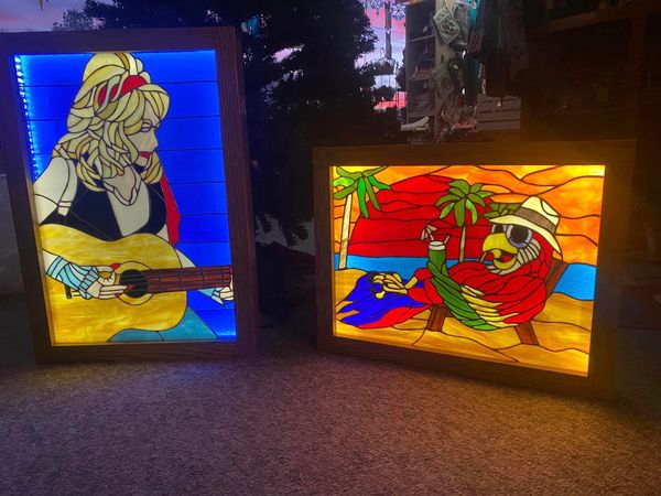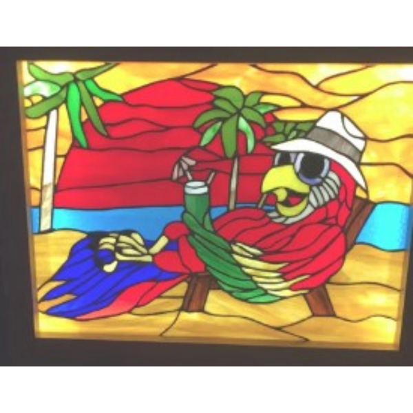 Larry the Party Parrot in lighted oak shadow box. Contact me to purchase.